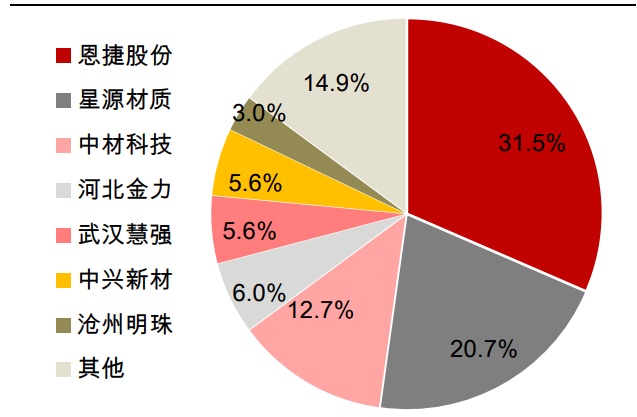 显而易见,全球隔膜产能不断向中国集中,中国市场不断向头部企业靠拢。海外方面主流隔膜企业集中于日韩,整体扩张节奏放缓,新增产能有限,无法匹配行业需求增速;国内方面,国内主流隔膜企业产能大幅扩张,同时全球化供应的步伐加速,隔膜有望成为继负极、电解液之后第三个实现全面出口的锂电中游材料;更为关键的是国内隔膜市场不断向头部企业集中,在隔膜壁垒高、盈利难、叠加头部企业并购整合影响下,目前行业格局渐趋清晰,前三家国内份额超过85%,而头部企业在技术、融资、扩产等方面具备优势,未来全球份额也有望持续提升。