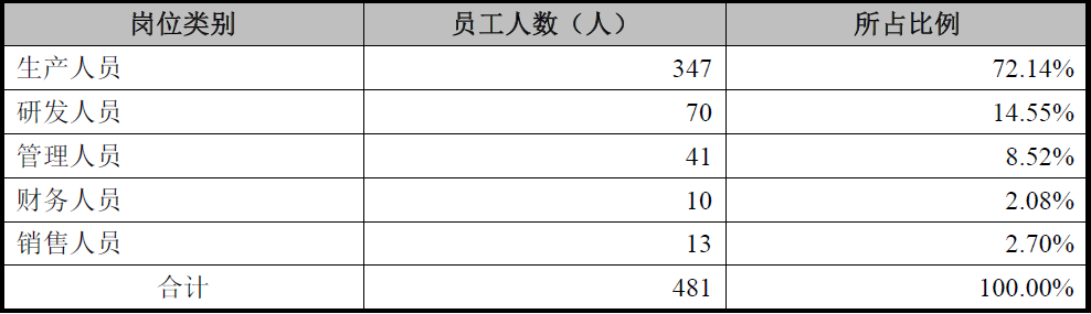2018年末,锐新昌共有员工481名,其中有347名员工为生产人员,占员工总数比例高达72.14%;而研发人员共70名,占比仅14.55%。这样的员工专业结构,锐新昌更像是一个普通的制造企业,而非什么高新技术企业。(见表一)