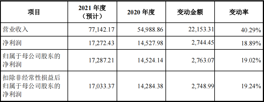 结合市场和业务拓展情况、截至目前在手订单的执行情况和公司生产经营计划等,天源环保预计2021年度实现营业收入77142.17万元,同比增长40.29%;实现归属于母公司股东的净利润17287.21万元,同比增长19.02%,扣非后归属于母公司股东的净利润17033.37万元,同比增长19.24%。上述2021年度业绩预计中的相关财务数据为公司初步测算结果,未经审计或审阅,且不构成公司盈利预测。