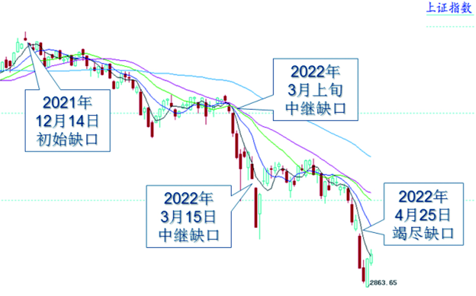 由图可见,去年12月14日有一个初始缺口,今年3月有多个中继缺口,4月25日大概率属于竭尽缺口。