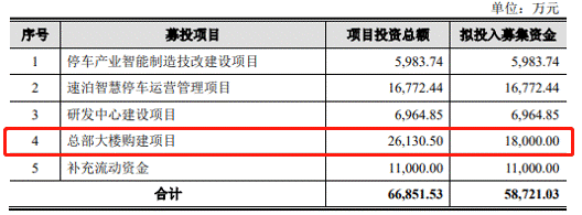 科拓股份此次募投项目投资总额6.7亿元,其中2.6亿元用于总部大楼构建项目,拟投入募集资金1.8亿元,也是投资最多的一项。