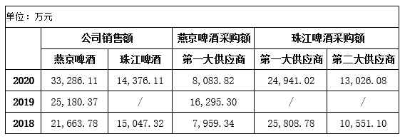 表:永顺泰销售情况及燕京啤酒、珠江啤酒供应商采购情况