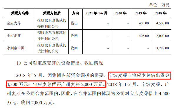 我们注意到,2018 年 5 月,因集团内部资金调拨的需要,宁波麦芽向宝应麦芽借出资金4,500 万元,宝应麦芽偿还广州麦芽 2,000 万元。因宁波麦芽、广州麦芽在公司的重组合并范围内,因此体现为永顺泰与宝应麦芽间的资金往来,但对于2,500万元的剩余未回收部分,并未提及相关后续处理,或许难以排除后续仍存在矛盾或产生争议的可能。