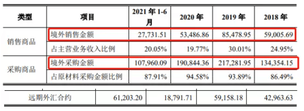 此外,永顺泰的境外采购占比约90%,境外销售占比约20~30%,外币敞口较大,汇率变动对净利润的影响程度仅次于原材料价格。因此,公司通过购买远期外汇合约的方式以规避汇率变动风险。