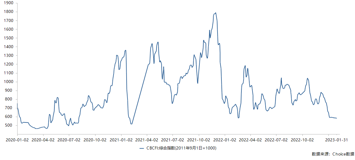2022年1月初至2023年1月30日,海运煤炭运价指数CBCFI虽然有所波动,但总体呈下降趋势。比如,2023年1月初CBCFI相较2022年1月初减少了20.02%,2023年1月30日CBCFI相较2022年1月初减少了24.86%;2023年1月初CBCFI相较2022年6月30日减少了25.03%,2023年1月30日CBCFI相较2022年6月30日减少了29.57%。